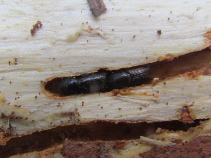 Жизненный цикл древесинников является ярким примером симбиотических отношений между насекомым и сопутствующим ему грибком. Жуки расселяют этот грибок, создавая ему особо благоприятные условия для развития внутри своих ходов, грибок же доставляет пищу их личинкам. Т.е. даже если удастся вытравить всех жуков каким-нибудь отравляющим веществом, грибница останется не поврежденной. При этом нужно учесть, что химический метод убивает жуков не на всех стадиях развития особи, и потребуется 3-4 обработки в течение года, а учитывая длительный период развития личинок – то данные обработки придется повторять в течение нескольких лет.